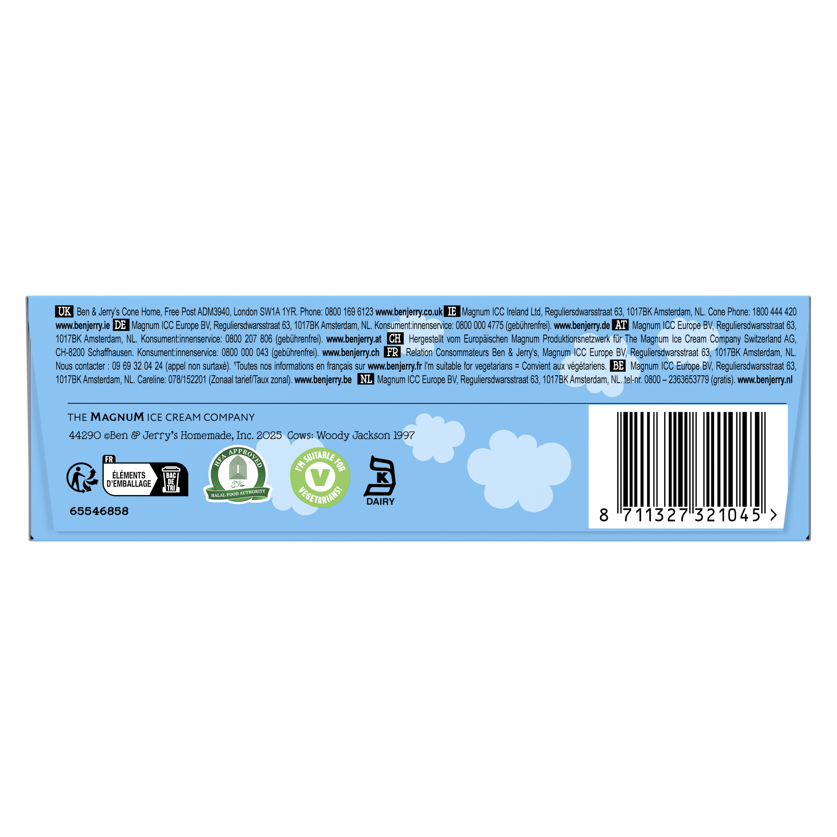Zutaten: #B&J collection 4 MP - Chocolate Fudge Brownie Zutaten: RAHM (24%), Zucker, Trinkwasser, KONDENSMAGERMILCH, Kakao (4%), Mehl (WEIZEN, GERSTENMALZ), fettarmer Kakao (1,5%), Glukosesirup, Sojaöl, EIGELB, EI, EIKLARPULVER, Speisesalz, Stabilisatoren (Guarkernmehl, Carrageen), Vanilleextrakt, Backtriebmittel (Natriumhydrogencarbonat).Fairtrade-Zucker, -Kakao und -Vanille werden während ihrer Verarbeitung mit nicht zertifizierten Zutaten vermischt (Mengenausgleich). Gesamtanteil 80% ohne Wasser und Milchprodukte. info.fairtrade.net/sourcing. #B&J collection 4 MP - Cookie Dough Zutaten: RAHM (27%), Trinkwasser, Zucker, KONDENSMAGERMILCH, WEIZENMEHL, brauner Zucker, EIGELB, BUTTER, Kokosfett, fettarmer Kakao, Sojaöl, EI, Kakaomasse, Melasse, Vanilleextrakt, Stabilisatoren (Guarkernmehl, Carrageen), Kakaobutter, Speisesalz, Emulgator (Lecithine (SOJA)), BUTTERFETT, natürliches Vanillearoma, natürliche Aromen (mit MILCH).Fairtrade-Zucker, -Kakao und -Vanille werden während ihrer Verarbeitung mit nicht zertifizierten Zutaten vermischt (Mengenausgleich). Gesamtanteil 65% ohne Wasser und Milchprodukte. info.fairtrade.net/sourcing. #Ben & Jerry's Cookie & Brownie cool-lection - Chocolate Fudge Brownie Zutaten: Trinkwasser, Zucker, RAHM (24%), konzentrierte MAGERMILCH, Kakao (4%), Mehl (WEIZEN, GERSTENMALZ), fettarmer Kakao (1,4%), Sojaöl, EIGELB, EI, EIKLARPULVER, Speisesalz, Stabilisatoren (Guarkernmehl, Carrageen), Vanilleextrakt, Backtriebmittel (Natriumhydrogencarbonat).Fairtrade-Zucker, -Kakao, -Vanille mit Mengenausgleich. Gesamtanteil: 85% ohne Wasser und Molkereiprodukte(F). #Ben & Jerry's Cookie & Brownie cool-lection - Cookie Dough Zutaten: RAHM (27%), Trinkwasser, Zucker, konzentrierte MAGERMILCH, WEIZENMEHL, brauner Zucker, EIGELB, BUTTER, Kokosfett, fettarmer Kakao, Sojaöl, EI, Kakaomasse, Melasse, Vanilleextrakt, Stabilisatoren (Guarkernmehl, Carrageen), natürliche Aromen (mit MILCH), Kakaobutter, Speisesalz, Emulgator (Lecithine (SOJA)), BUTTERFETT, natürliches Vanillearoma.Fairtrade-Zucker, -Kakao, -Vanille mit Mengenausgleich. Gesamtanteil: 66% ohne Wasser und Molkereiprodukte(F).