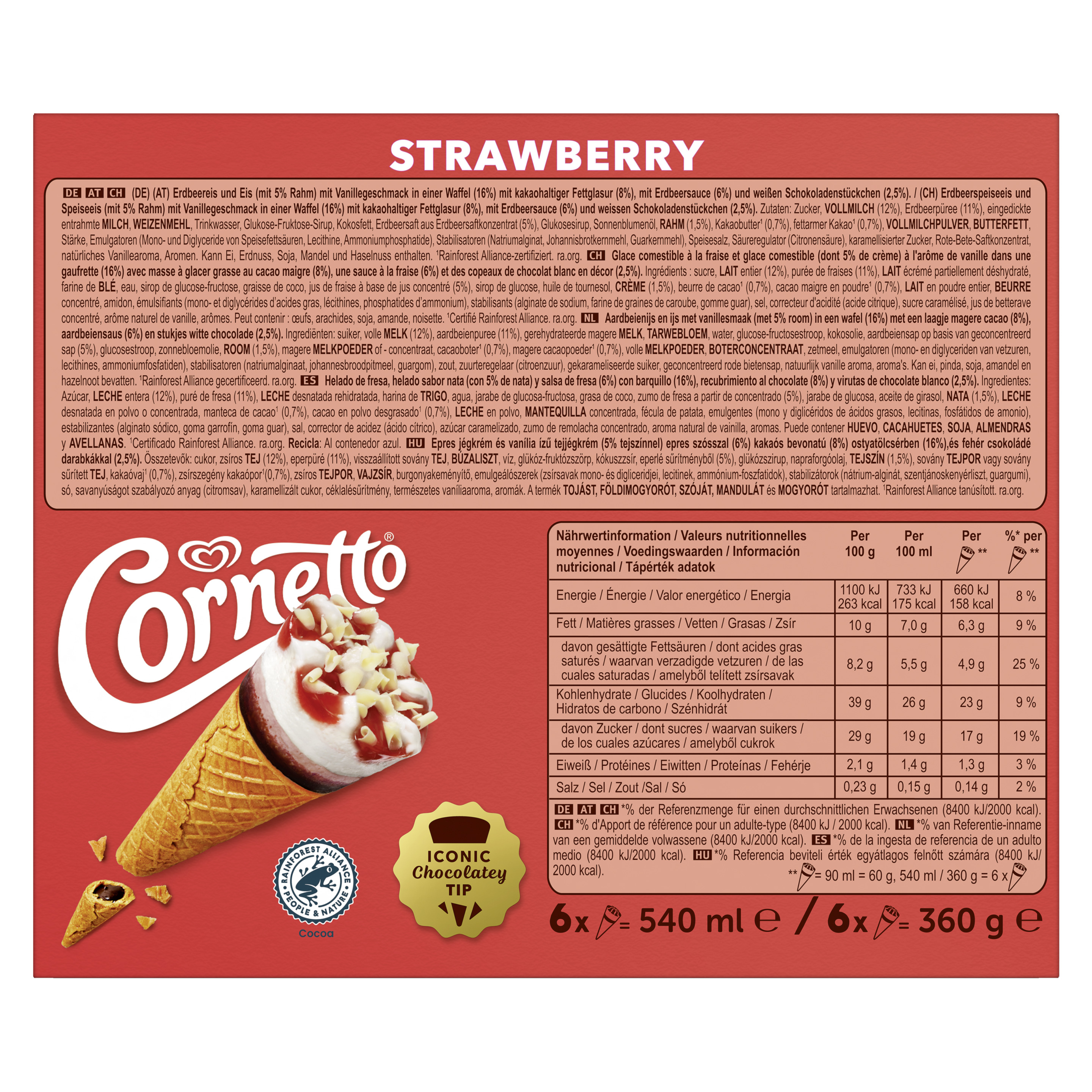 Produktinformationen "Cornetto Erdbeer 6 x 90 ml"