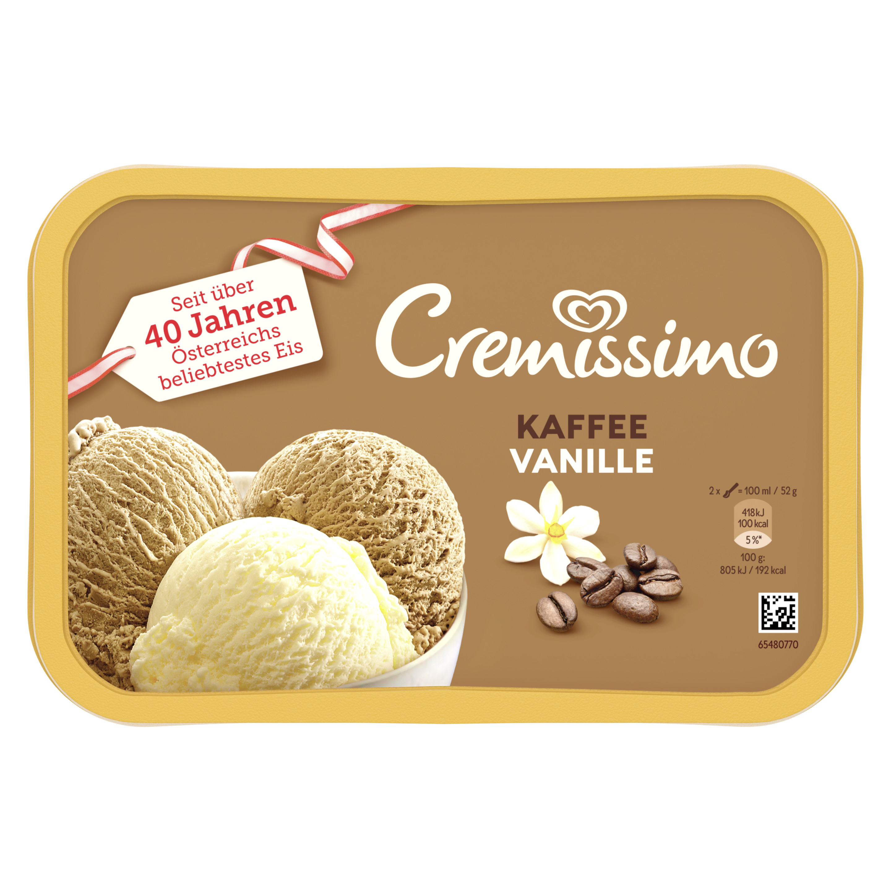 Cremissimo Kaffee Vanille Eis steht für löffelzarten Eisgenuss.