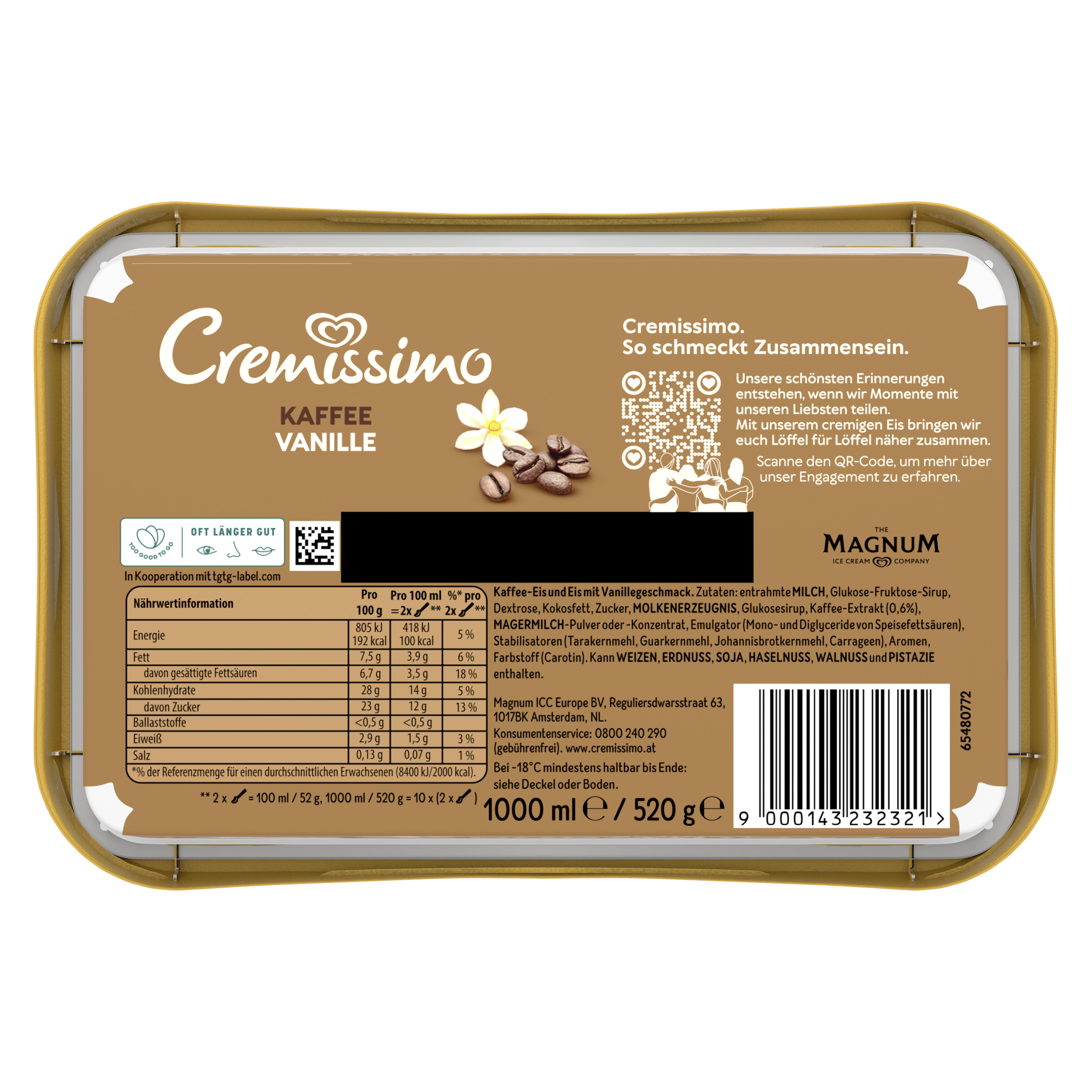 Produktinformationen "Cremissimo Kaffee-Vanille Eis 1L"