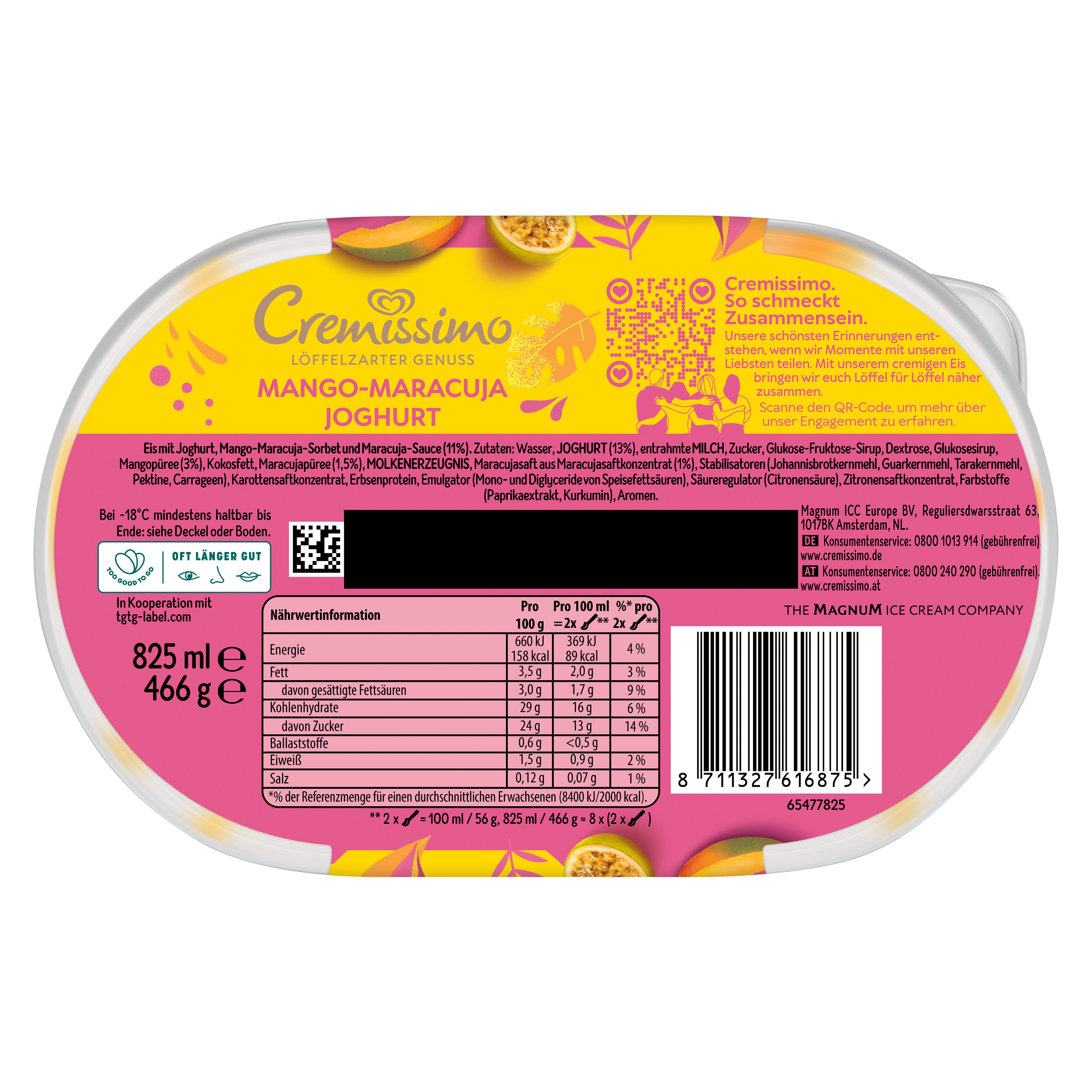 Produktinformationen "Cremissimo Mango-Maracuja Joghurt Eis 825ml"