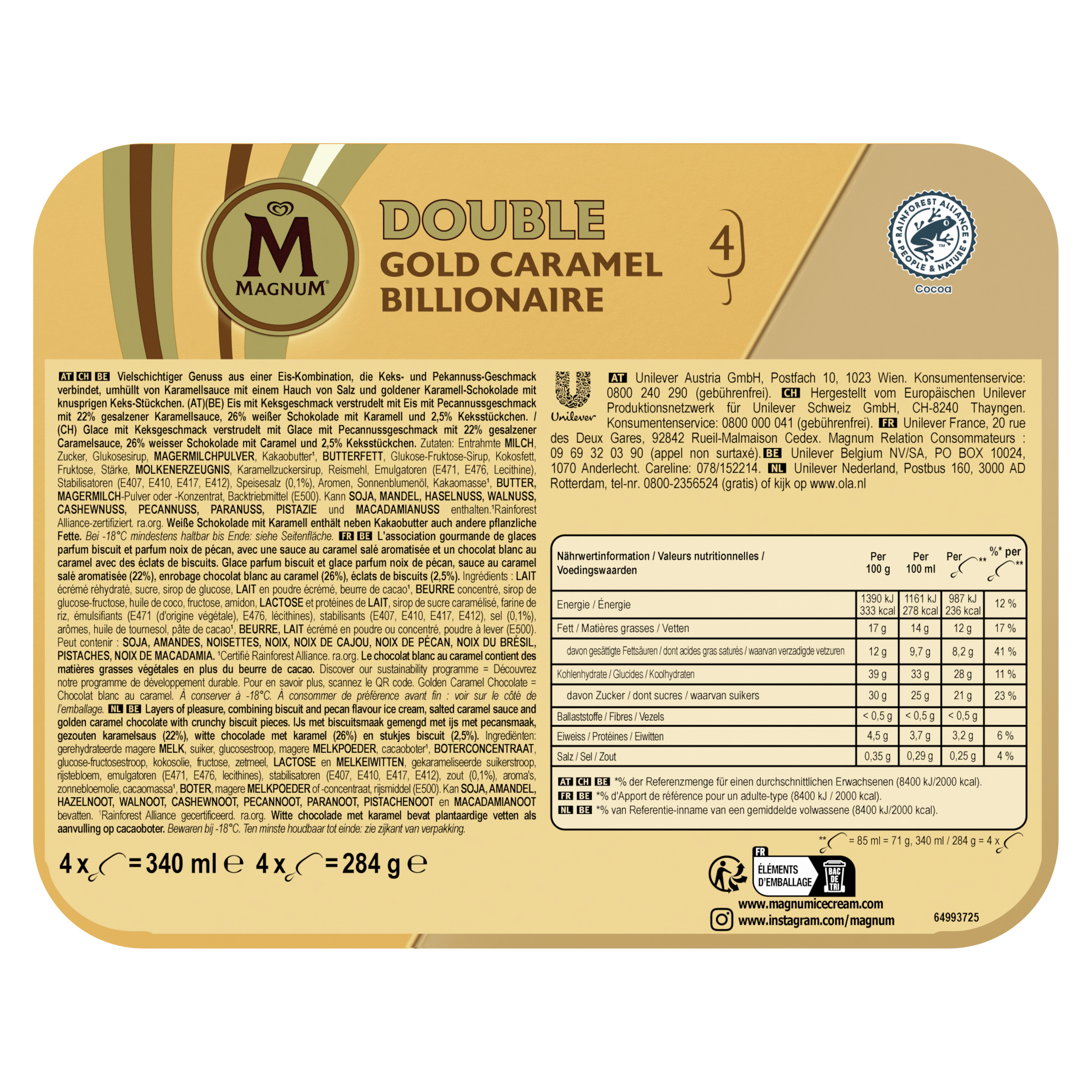 Magnum Double Gold Caramel Billionaire 4 x 85 ml