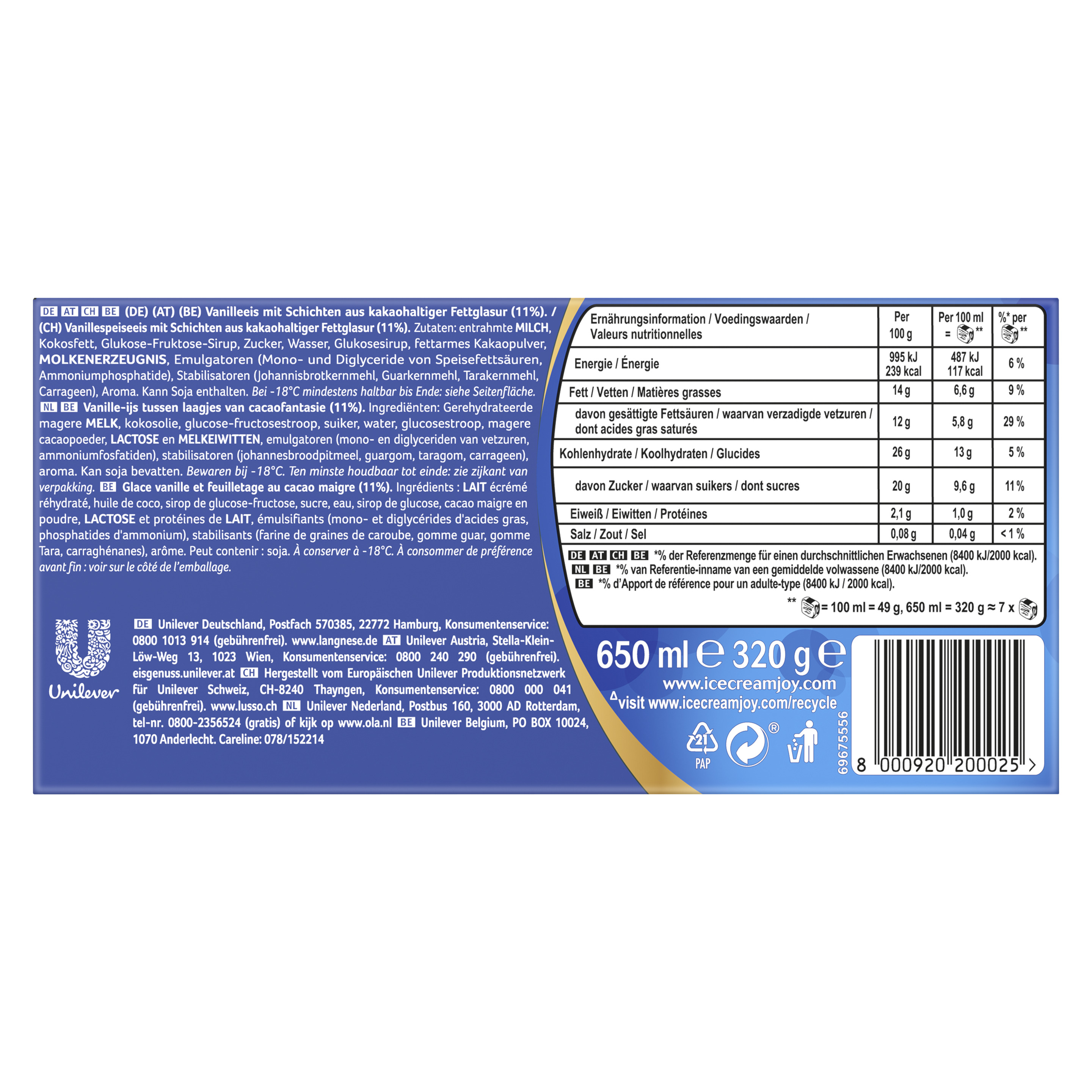 Enthält: MILCH. Kann Spuren von SOJA enthalten.