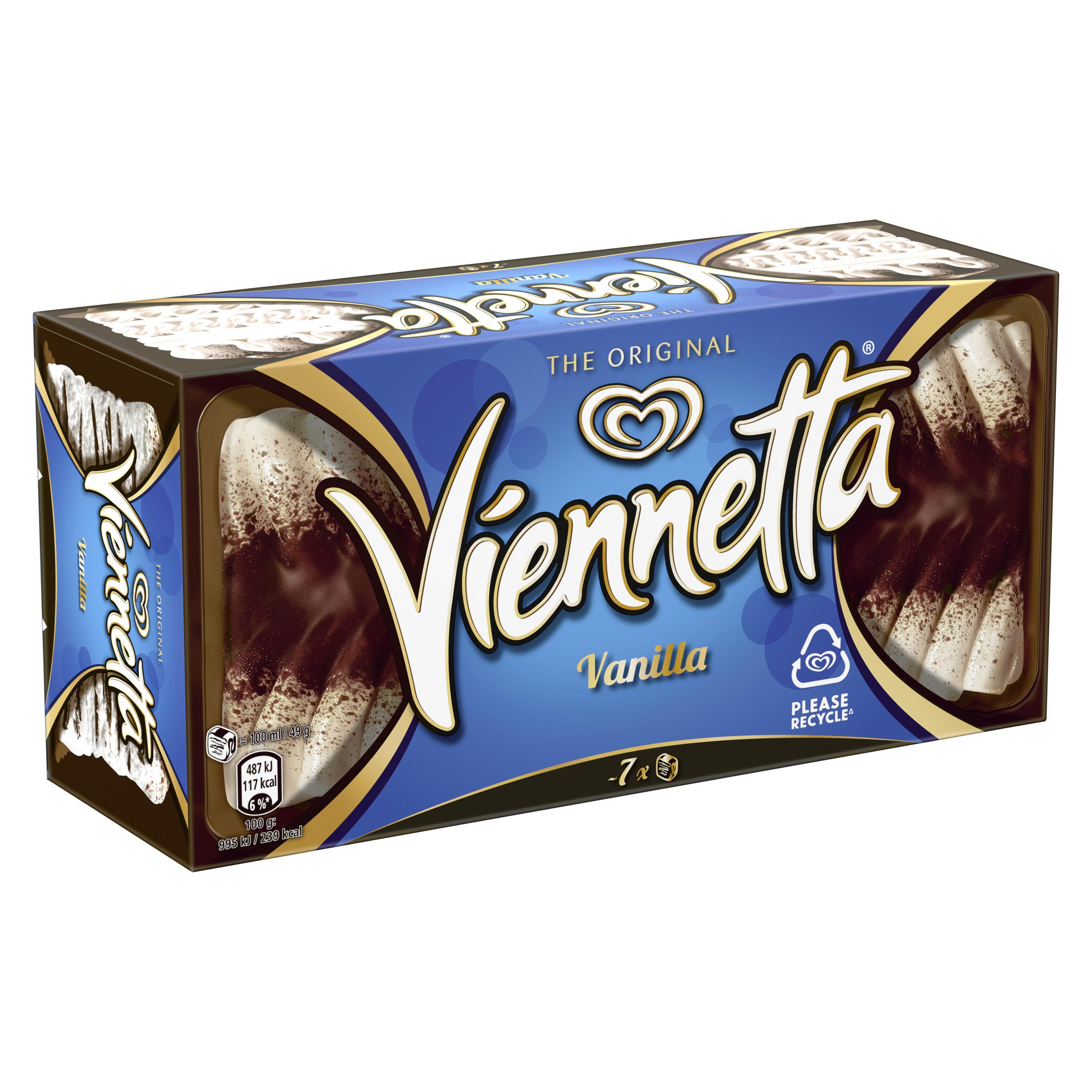 Cremig, knackig, kultig - das neue Viennetta, jetzt noch knuspriger. Cremiges Vanilleeis durchzogen von Knusperschichten.